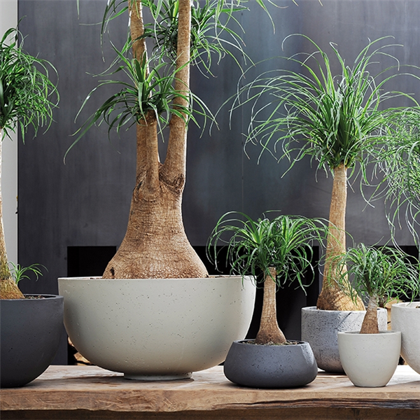 Der Elefantenfuß (Beaucarnea recurvata), auch Flaschenbaum oder Wasserpalme genannt, ist der robuste Ruhepol des Oster-Trends. Er erhielt seinen Namen aufgrund seines keulenförmig verdickten Stammes, der so stabil wie der Fuß eines Elefanten wirkt. Da den Elefantenfuß so schnell nichts aus der Ruhe bringt, steht er symbolisch als Kraftzentrum für eine feste und beständige Entwicklung. Er mag einen hellen Platz ohne direktes Sonnenlicht. Gießen Sie ihn regelmäßig, Staunässe gilt es zu vermeiden.
