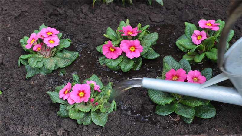 Zum Schluss werden die Primeln noch angegossen. Dabei sollte aber nur der Wurzelbereich und nicht die Pflanze selbst gewässert werden.