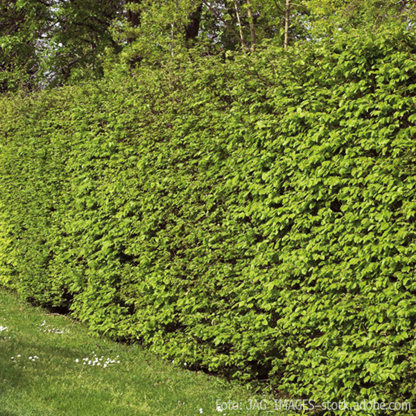 Die Hainbuche (Carpinus betulus) ist keine echte Buche, sie gehört zur Familie der Birkengewächse und ist mit den Birken, Erlen und der Haselnuss verwandt. Die Pflanze ist in fast ganz Mittel- und Südeuropa zu Hause, ihr Verbreitungsgebiet erstreckt sich sogar über Westasien bis nach Persien. Grüne und rote Buchen zählen zu den beliebtesten sommergrünen Heckenpflanzen, da sie sehr anspruchslos sind. Die Gehölze bevorzugen stets leicht feuchten, gut durchlässigen Boden. Die Blätter der Buchen halten lange nach, daher bieten Buchenhecken auch im Winter noch ein wenig Sichtschutz. Das Blattwerk ist eiförmig bis elliptisch und bis zu 8 cm lang. Hainbuchen sind robust, auch sommerliche Hitze und vorübergehende Trockenheit werden gut vertragen. Um sie in Form zu halten, sollten Sie sie Ende Juni und Ende August schneiden. Wenn Sie eine Hainbuchenhecke pflanzen, unterstützen Sie die heimische Tierwelt. Vögel suchen sich diese Pflanze gerne als Brutplatz aus, auch Bienen erfreuen sich am Nektar der gelben Blüten der rot- oder grünlaubigen Sträucher.