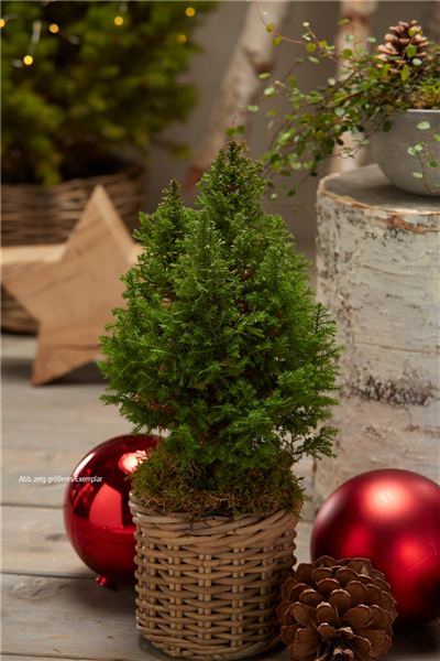 bevorzugt einen sonnigen und geschützten Standort. Sein kompakter und zwergiger Wuchs eignet sich hervorragend zur winterlichen Dekoration vor dem Hauseingang.