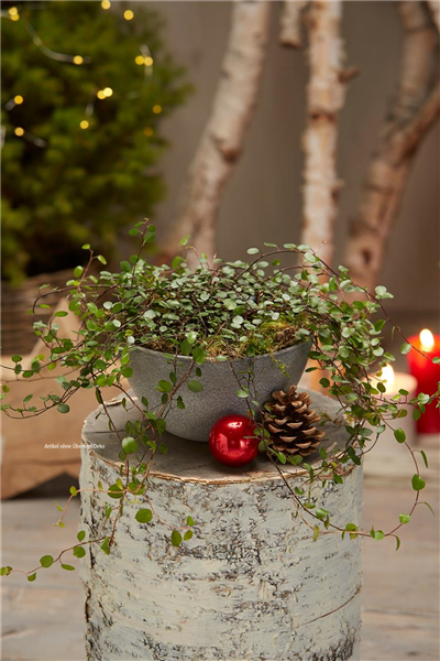 Drahtwein (Muehlenbeckia complexa) lässt sich sehr gut mit winterlichen Dekoelementen kombinieren.