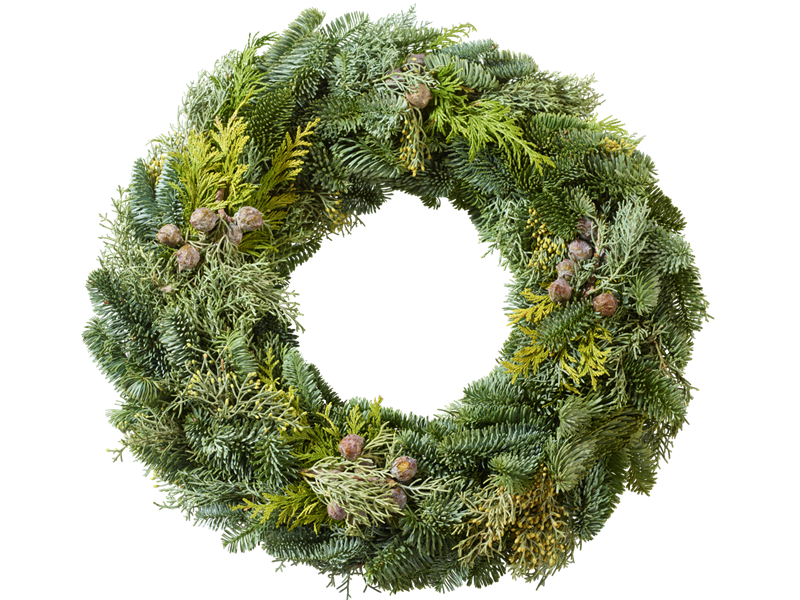 Der Advents-Monokranz (z. B. aus Silbertanne (Abies nobilis) oder Nordmanntanne (Abies nordmanniana)) ist schlicht und dennoch elegant. Er ist ein unverzichtbares Accessoire in der Weihnachtszeit und fügt sich in jede winterliche Dekoration ein. Mit ihm kann man seinen kreativen Vorstellungen freien Lauf lassen. Mit Kerzen oder vielen weihnachtlichen Accessoires, wie mit Weihnachtskugeln bestückt oder mit Pflanzen verziert – alles ist möglich. Wer mag, der kann den Kranz auch hängend an einer Tür befestigen. Verschiedene satte Grüntöne der Natur vereint der Advents-Mixkranz. Ohne viel Tamtam sind die verschiedenen Mixkränze echte Hingucker. Er ist beidseitig gebunden und eignet sich für einen vielseitigen Einsatz in der weihnachtlichen Dekoration.