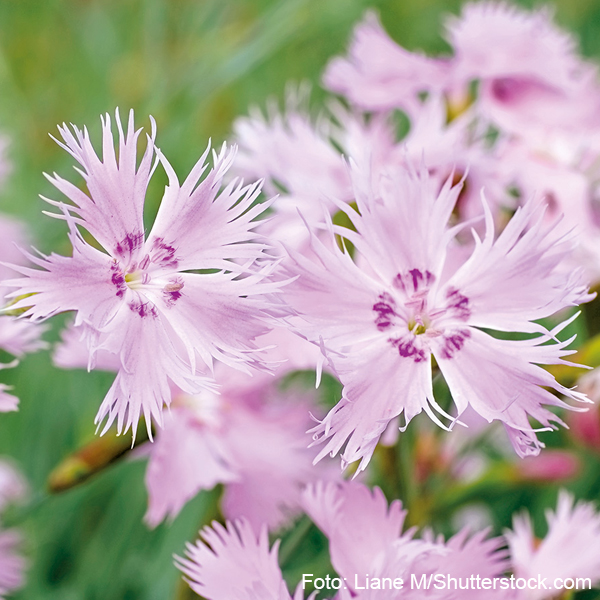 An einem sonnigen und sandigen Platz fühlt sich die Federnelke (Dianthus plumarius) am wohlsten. Ihr intensiver gewürznelkenartiger Duft verbreitet sich wie ein Teppich.