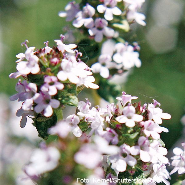 Der Thymian (Thymus) zaubert einen üppigen und leicht herb duftenden Teppich mit violetten, rosafarbenen oder weißen Blüten. Nicht nur die Blätter, auch die Blüten des Thymians sind genießbar und lassen sich zum Würzen von Speisen nutzen. Pflanzen Sie ihn an einen sonnigen, trockenen und windgeschützten Standort.