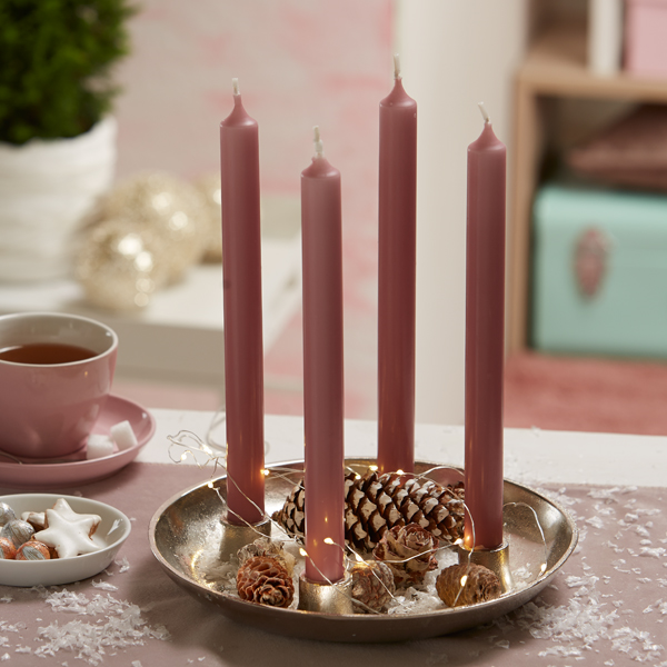 Wenn Sie Ihrer Winterdekoration den ultimativen Feinschliff verleihen wollen, können Sie noch Lichterketten und Kerzen in die Dekoration integrieren. Die sorgen für Lichtakzente und machen alles noch ein bisschen gemütlicher.