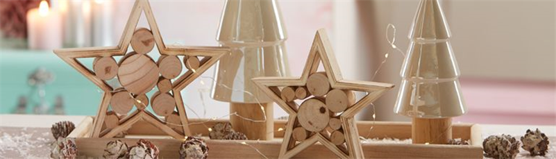 Schnee gehört zum Winter wie Ostereier zu Ostern. Wenn aber kein Schnee liegt, können Sie Ihrer Dekoration ordentlich einschneien! Mit Streuschnee zum Beispiel. Der schmilzt nicht und sieht toll aus. Zusammen mit Dekotannen aus Kiefernholz und Stoff können Sie ganze Winterlandschaften gestalten. Die gibt es in verschiedenen Farben und Größen, genau passed für Ihr Dekokonzept. Zusammen mit Sternen aus Kiefernholz und Kerzenhaltern können Sie Ihrer Winterdekoration den Feinschliff verleihen. Samt-Stoff sorgt abschließend für den letzten Funken, der zur absoluten Gemütlichkeit noch gefehlt hat. Es müssen nicht immer große Deo-Elemente oder kitschige Weihnachtsmänner sein, um eine gemütliche Vorweihnachtsstimmung zu erzeugen.