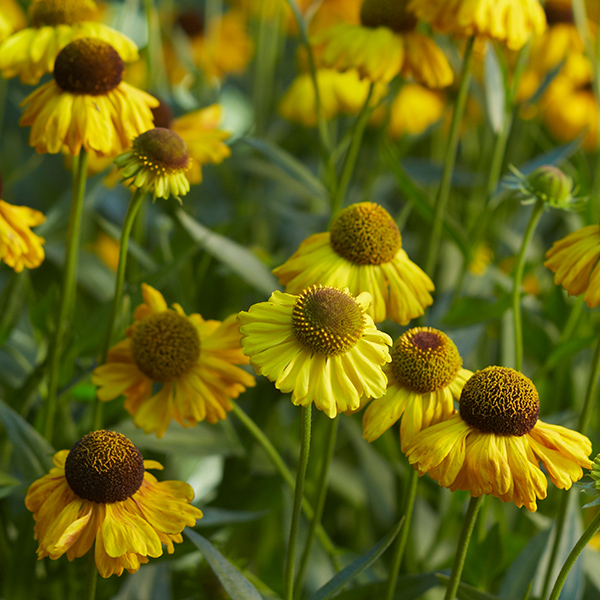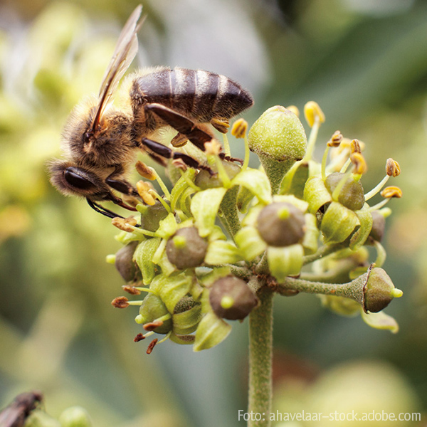 Gärten mit wenig Platz können mit Rankpflanzen bienenfreundlich gestaltet werden. Efeu (Hedera) oder wilde Rosen (Rosa) eignen sich sehr gut, um eine Pergola oder Laube zu begrünen. Sie verwandeln den Sitzplatz in eine grüne Oase, spenden im Sommer schützenden Schatten und bieten den Bestäubern bis in den September hinein einen gut gedeckten Tisch. Zur selben Zeit geben Stauden wie Sonnenbraut (Helenium) und Aster (Aster) den Ton an und belohnen mit einem lebhaften Insektentreiben. Auch spät blühende Zwiebelblumen wie ungefüllte Dahlien (Dahlia) werden gerne angeflogen.