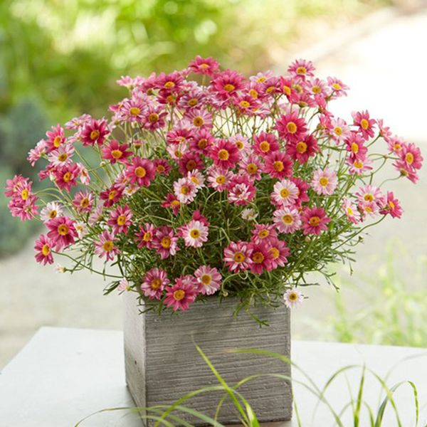 Eine Woge zarter Margeritenblüten darf auf keinen Fall auf Balkon oder Terrasse fehlen! Mit ihren frischen klaren Farben sorgt die Strauchmargerite (Argyranthemum frutescens) für gute Laune. Je nach Sorte blüht sie in Weiß, Gelb oder Rosa. Und dazu ist sie eine der blühfreudigsten Balkonpflanzen. Wer Blüten mag, wird die Strauchmargerite lieben.