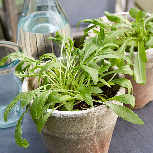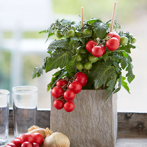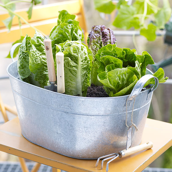 Viele Kräuter und auch Erdbeeren (Fragaria) fühlen sich in niedrigen Töpfen mit einer Höhe von etwa 20 cm wohl. Salat und Radieschen (Raphanus) sollten besser in Kistchen gepflanzt oder gesät werden. Johannisbeeren (Ribes) und Tomaten (Lycopersicon) können in großzügig bemessenen Kübeln oder Töpfen gut untergebracht werden.