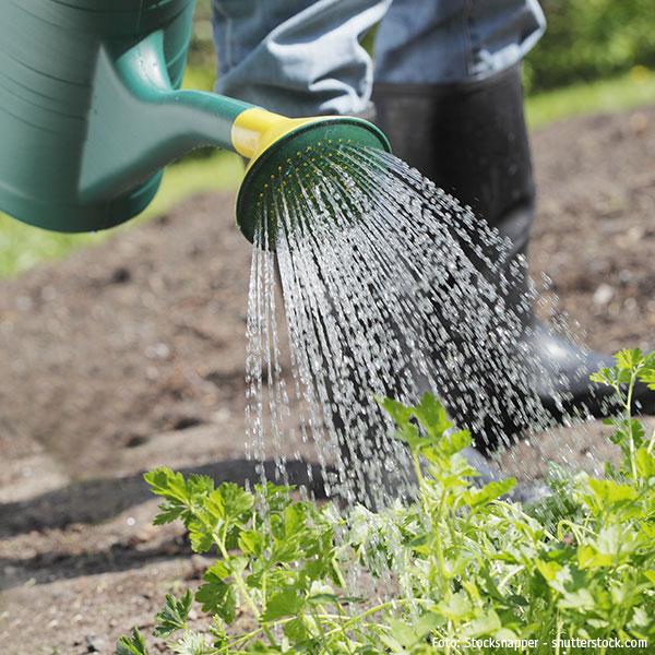 Eiskaltes Wasser aus der Leitung bedeutet an heißen Tagen einen Kälteschock für die Pflanzen. Deshalb die Gießkannen schon vorab mit Wasser befüllen, damit es sich erwärmen kann.