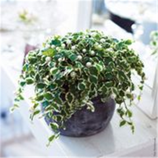 Auch die Kletterfeige (Ficus pumila) ist hübsch als dezentes Schmuckstück. Ursprünglich wächst sie in Ostasien als Kletterpflanze. Ohne Kletterhilfe hängen ihre Triebe nach unten. Die Blätter sind grün oder grün-weiß meliert. Je bunter das Laub, desto mehr Licht braucht die Kletterfeige. Am besten wächst sie an einem halbschattigen, warmen Standort.