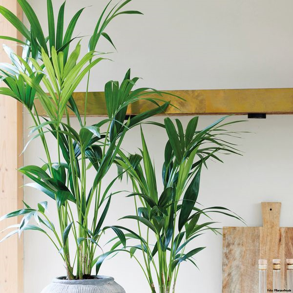 Die Kentia-Palme (Howea forsteriana) gehört zu den beliebtesten Zimmerpalmen, wächst relativ langsam und ist außerordentlich pflegeleicht. Die ersten Samen wurden 1869 von Charles Moore, dem Direktor des Royal Botanic Garden in Sydney, bei einem Besuch auf der paradiesisch gelegenen Lord-Howe-Insel gesammelt. Für den Begriff “Kentia-Palme” stand Kentia, die Hauptstadt der Lord-Howe-Inseln, Pate.