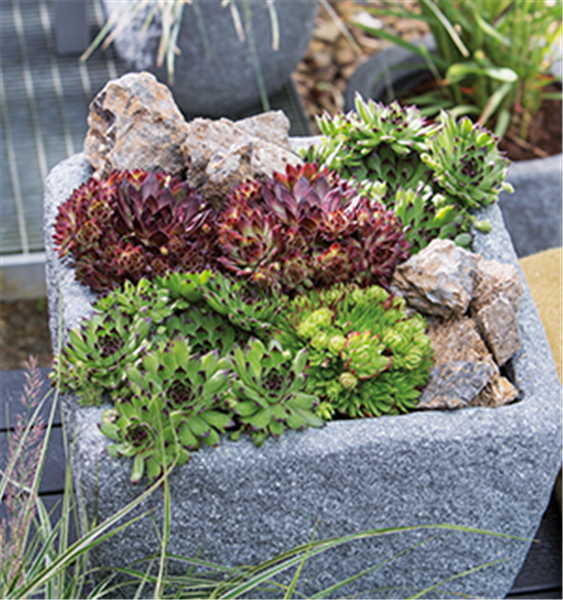 Sogenannte Dickblattgewächse, auch als Sukkulenten bekannt, können Wasser in ihren Blättern speichern. Dazu gehören zum Beispiel Hauswurze oder auch die Fetthenne. Pflanzen mit grausilbrigen Blättern wie Lavendel oder die Blauraute reflektieren das Sonnenlicht und heizen daher weniger stark auf. Einige Pflanzen wie Königskerzen, Majoran oder Wollziest haben einen feinen Flaum auf ihren Blättern, der vor dem Austrocknen schützt. Ideal sind auch Pflanzen mit kleinen oder schmalen Blättern, wie z.B. Eisenkraut oder Rosmarin, da sie durch die geringere Oberfläche weniger verdunsten. Aber auch Rosen kommen lange ohne Wasser aus, da sie tiefe Wurzeln haben und so tiefer liegende Wasservorräte im Boden erreichen.