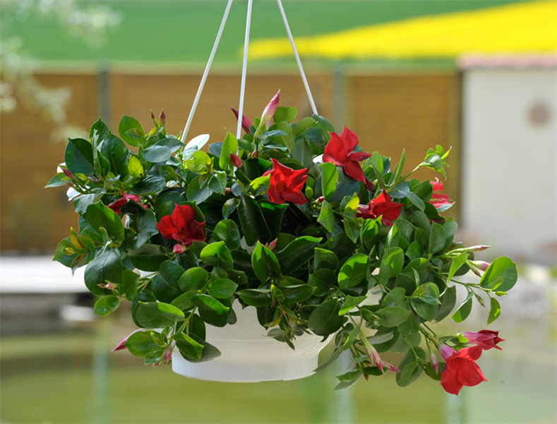 Mandevilla Sundaville™ ist keineswegs kapriziös, sondern ausgesprochen anspruchslos. Sie benötigt ein nährstoffreiches Substrat, am besten setzt man sie in eine mit Langzeitdünger angereicherte Erde – nur mit ordentlicher „Nahrung“ kann die Schlingpflanze kräftige Triebe, üppiges Blattwerk und große, leuchtende Blüten entwickeln. Ohne Langzeitdünger ist wöchentliches Düngen nötig!