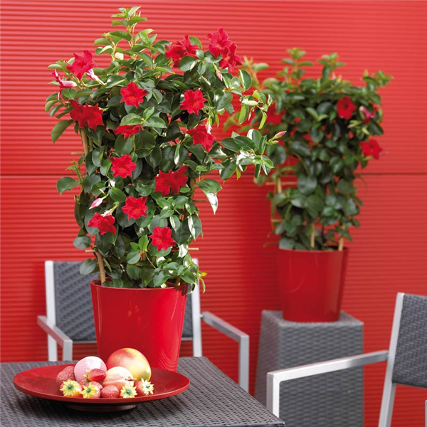 Die exotischen Blüten mit tiefem Schlund üben auf ihre Beobachter eine große Faszination aus. Ob feurige Rot- oder zartere Pinktöne – ihre Blüten zeigt Mandevilla Sundaville™ durchgehend von April bis Oktober. Die länglichen dunkelgrünen und leicht glänzenden Blätter bilden dabei einen hübschen Kontrast und lassen die Blüten erst recht leuchten.