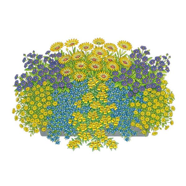 Für unsere Pflanzidee PURE HINGABE in gelb-blau benötigen Sie: