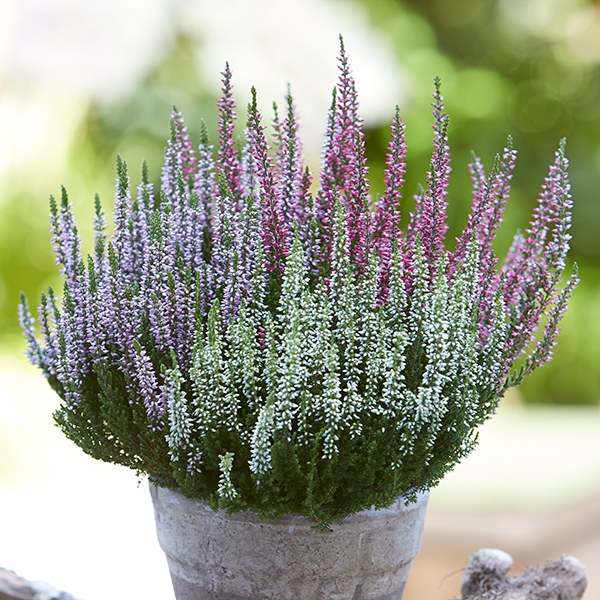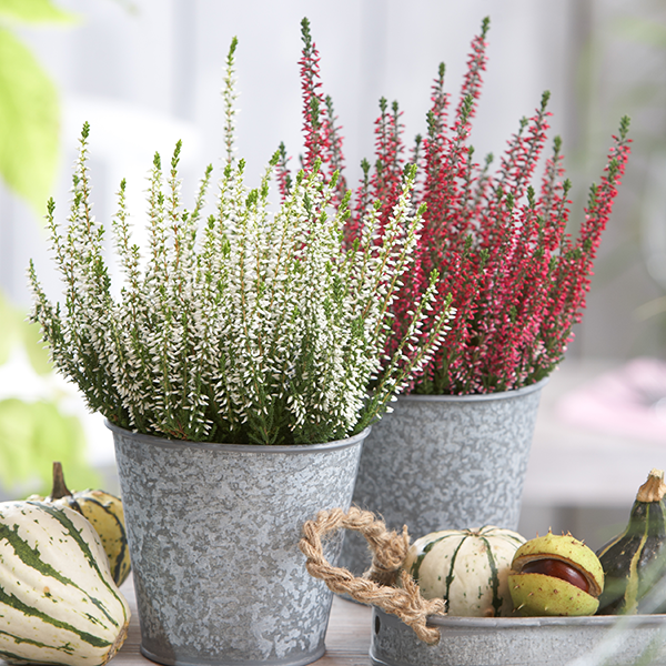Heidepflanzen gibt es in einer Vielzahl verschiedenster Sorten und Arten, die mit grünem oder auch buntem Laub und Blüten in verschiedenen Violett-, Rot- und Rosatönen bis hin zu Weiß aufwarten. Die meisten von ihnen blühen im späten Sommer. So zum Beispiel die fälschlicherweise als “Erika” in deutschen Schlagern bereits viel besungene Besenheide, botanisch “Calluna vulgaris”. Sie sehen im blühenden Zustand herrlich aus, doch leider währt die Blühzeit nicht allzu lange. Deshalb gibt es neuerdings immer mehr Sorten, deren Knospen sich nicht oder erst ganz spät öffnen (zum Beispiel Knospenblüher wie die 'Garden Girls'). Ihre Blüte dauert wochenlang, in milden Wintern bis zum beginnenden Frühling - das ist ideal für die Verwendung im Garten, in Gefäßen und in Töpfen.