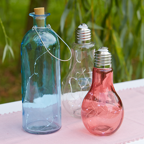 Die Mittelmeeratmosphäre rund um die Sitzecke verstärken Accessoires aus weiß-grauem Holz, das wirkt wie gerade am Strand aufgesammelt. Den Abend erleuchten Teelichter, die in einer wassergefüllten Schale treiben; pastellfarbene Lampen, die Glühbirnen nachempfunden sind, illuminieren im Hintergrund.