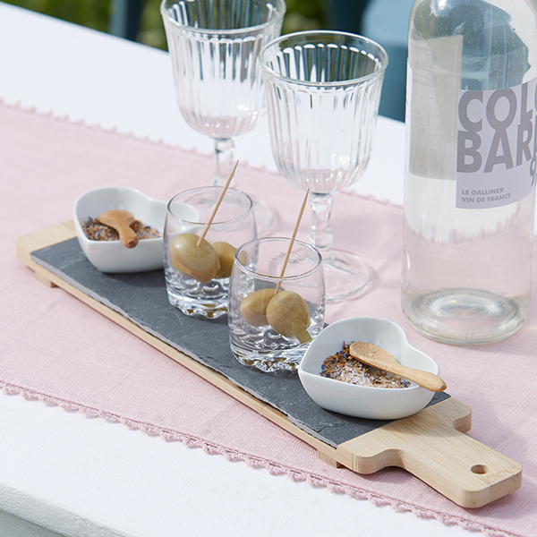 Fehlt noch etwas für einen durch und durch romantischen Abend? Vielleicht stylische Deko in Form von Mosaikherzen, die in die Zweige gehängt werden! Und welcher Aperitif darf es zur Begrüßung sein? Serviert wird er jedenfalls in Gläsern im Vintage-Look, gern zusammen mit den passenden Schalen, in denen Oliven oder salzige Snacks vorbereitet sind – ganz so, wie wir das aus den Bars und Trattorien des Mittelmeerraums kennen! Genussvolles Relaxen im Kreise von Freunden kann ja sooo einfach sein!