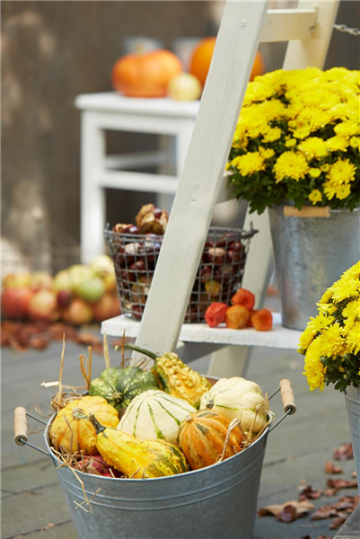 Es wird gemütlich um uns herum. Wir genießen die letzten warmen Sonnenstrahlen in unserer grünen Umgebung und schmücken sie mit Pflanzen und Dekorationselementen, die uns die herbstlichen Tage verschönern.