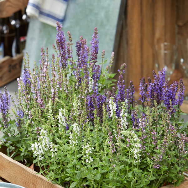 Besonders schön wirken Rosen, wenn auch ihre Begleiter lang blühen. Dazu gehört Zier-Salbei (Salvia nemorosa), den Sie durch einen Rückschnitt im Juli/August zu einer Nachblüte im September animieren können. Zier-Salbei gibt es in vielen verschiedenen Sorten, die Ihren Garten in der Kombination mit Rosen mit farbintensiven Blüten und verzaubernden Düften bereichern. Auch Balkone und Beete können mit Zier-Salbei bepflanzt werden. Die Insektenwelt, besonders die Honigbiene, wird es Ihnen danken.