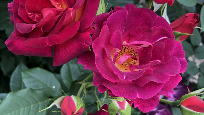 Rosen sind wahre Sonnenanbeter. Die kleinlaubigen Sorten sind besonders hitzetolerant, weil sie der Sonne wenig Angriffsfläche bieten. Mit ihren Pfahlwurzeln erschließen Rosen tiefe Bodenschichten und können deshalb bei Trockenheit auf Reserven zurückgreifen.