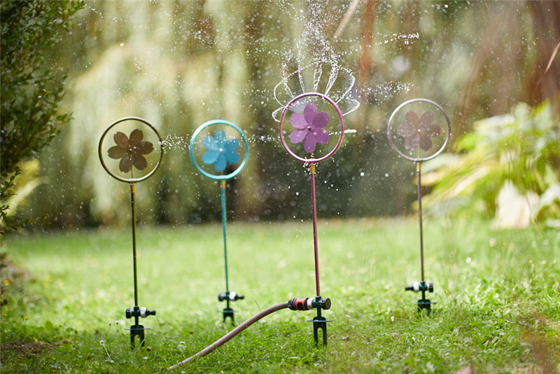 Wasserdruck werden feinperlige Wasserschweife versprüht oder Sie nutzen es alternativ als Windspiel.