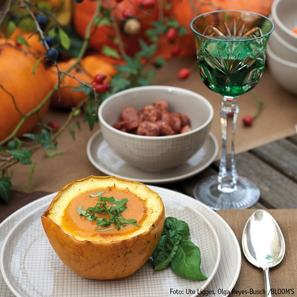 Weitere Deko-Ideen und leckere Rezepte finden Sie im Buch *„Kürbisgenuss - Rezepte und Deko-Ideen feiern mit Freunden“*, von Ute Ligges & Olga Reyes-Busch.