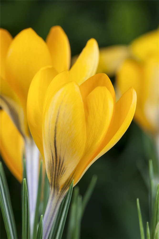 Der Krokus (Crocus angustifolius) bildet goldgelbe, ansehnliche Blüten von Januar bis Februar. Die Blüten sind trichterförmig.