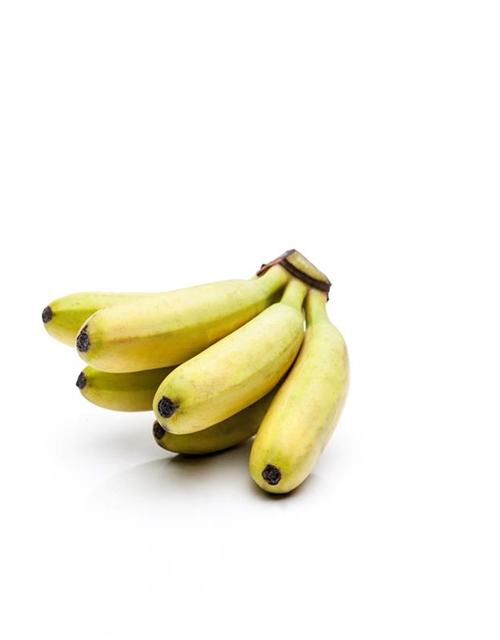 Musa acuminata 'Dwarf Cavendish' bildet gelbe, längliche Früchte.