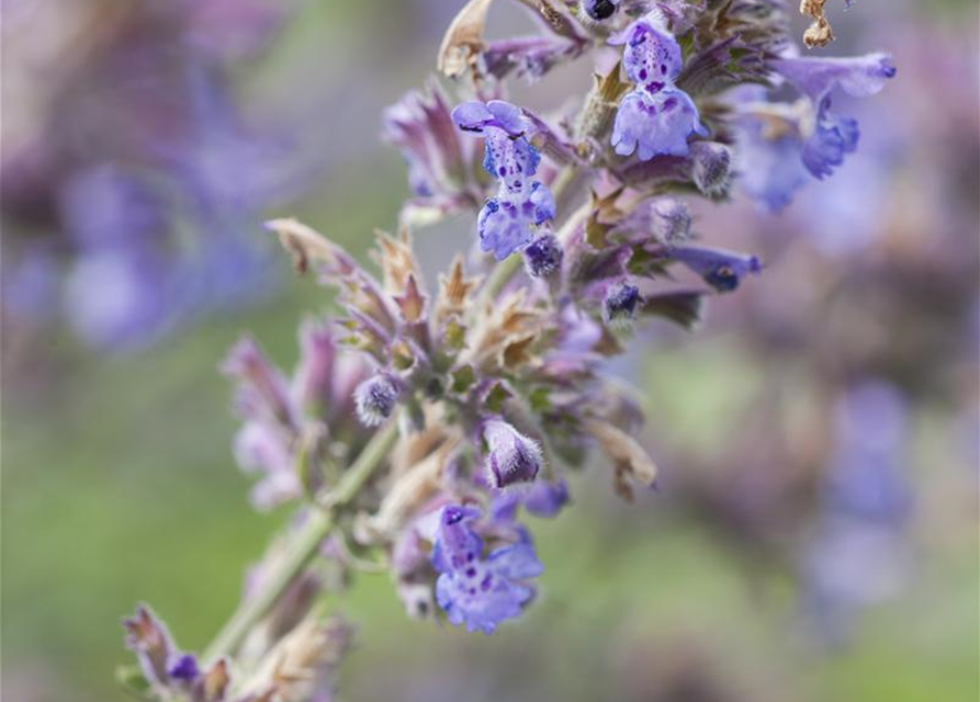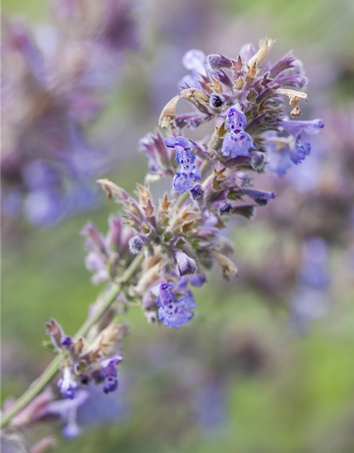 Nepeta x faassenii 'Purrsian Blue' bildet lippenförmige, blaue Blüten ab Mai.