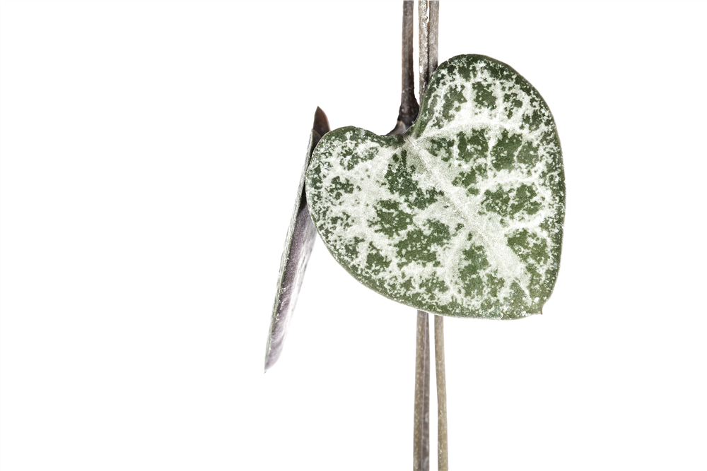 Die Leuchterblume (Ceropegia linearis subsp. woodii) ist eine rosa blühende Pflanze, die herzförmige, grau-grüne Blätter trägt. Diese hängende Pflanze gedeiht am besten an einem sonnigen Standort.