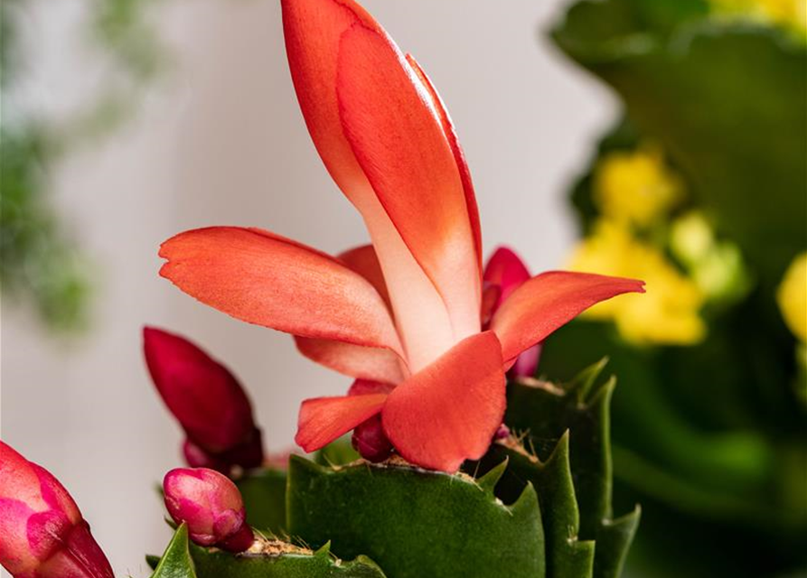 Die Blätter des Weihnachtskaktuses sind dunkelgrün, dickfleischig.